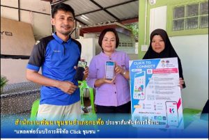 วันที่ 24 กรกฎาคม 2568 สำนักงานพัฒนาชุมชนอำเภอกะพ้อ โดยนางสาวเสาวนีย์ ไชยมุข พัฒนาการอำเภอกะพ้อ มอบหมายให้เจ้าหน้าที่พัฒนาชุมชน ร่วมดำเนินการประชาสัมพันธ์ การใช้ประโยชน์แพลตฟอร์มบริการดิจิทัล <Click ชุมชน> แพลตฟอร์มบริการดิจิทัลการพัฒนาคุณภาพชีวิตและชุมชน ที่ประชาชนสามารถเข้าถึงได้ง่าย สะดวก รวดเร็ว และใช้ประโยชน์ในการแก้ไขปัญหาคุณภาพชีวิตและพัฒนาความเป็นอยู่ให้ดีขึ้นผ่านแอพพลิเคชั่น “Click ชุมชน” ที่รองรับการใช้งานทั้งในระบบปฎิบัติการ Android และ iOS เป็นแพลตฟอร์มที่รวมเรื่องการท่องเที่ยวในชุมชน และการศึกษาข้อมูลเพิ่มเติมในด้านต่าง ๆ อาทิ แหล่งทุนชุมชน ความรู้ชุมชน การสร้างอาชีพ การสร้างรายได้ เพื่อใช้ในการวางแผนพัฒนาชุมชนและพัฒนาคุณภาพชีวิตของประชาชนต่อไป